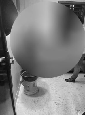 Một người đàn ông 61 tuổi đeo vòng cổ bằng kim loại bước vào phòng...