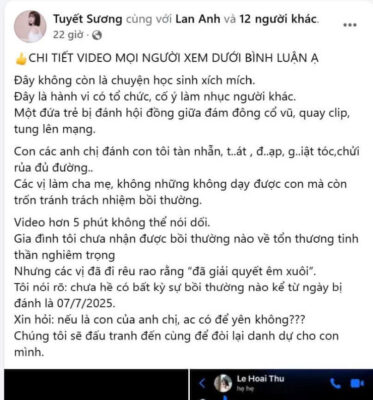 Thanh Sơn, Phú Thọ: 1 phụ huynh lên tiếng về việc con mình bị đ:ánh hội đồng