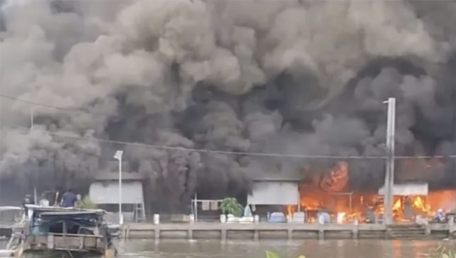 Lửa lớn bốc cháy ngùn ngụt, thiêu rụi 56 ki – ốt của 25 tiểu thương ở Cà Mau.